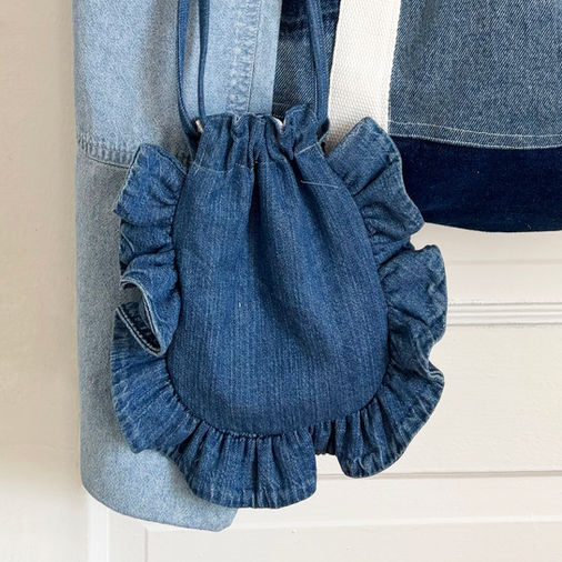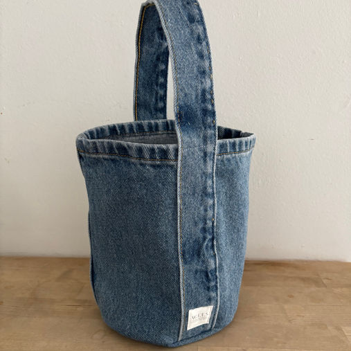 Handcrafted from upcycled denim jeans, each bucket bag is one-of-a-kind, blending style with sustainability. Original garment labels or tags are thoughtfully incorporated, making each bag unique.
