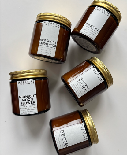 Hand-poured with care in small batches, our all-natural soy wax candles are designed to bring warmth, clarity, and comfort to your space. Each candle is housed in an amber glass vessel with a biodegradable bamboo lid—thoughtful in design, gentle on the earth.
