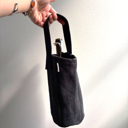 Carry your favorite bottle in sustainable style. This one-of-a-kind wine tote is handcrafted from upcycled quilt or denim.